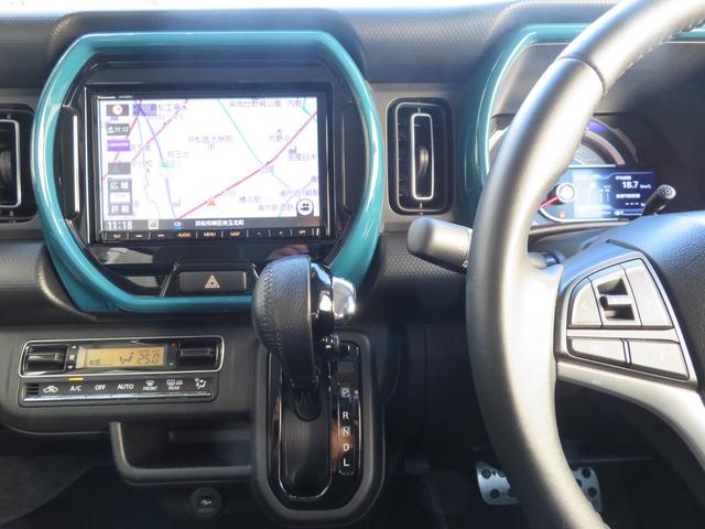 スズキ ハスラーハイブリッドX 純8インチナビ/フルセグTV/ブルートゥース/USB/DVD/CD録/SD/ナビTVキャンセラ/バックカメラ/ナビ連動ドラレコ/ETC/革ハンドル/前両シートヒータ/LEDヘッド/フォグ/アルミホイル