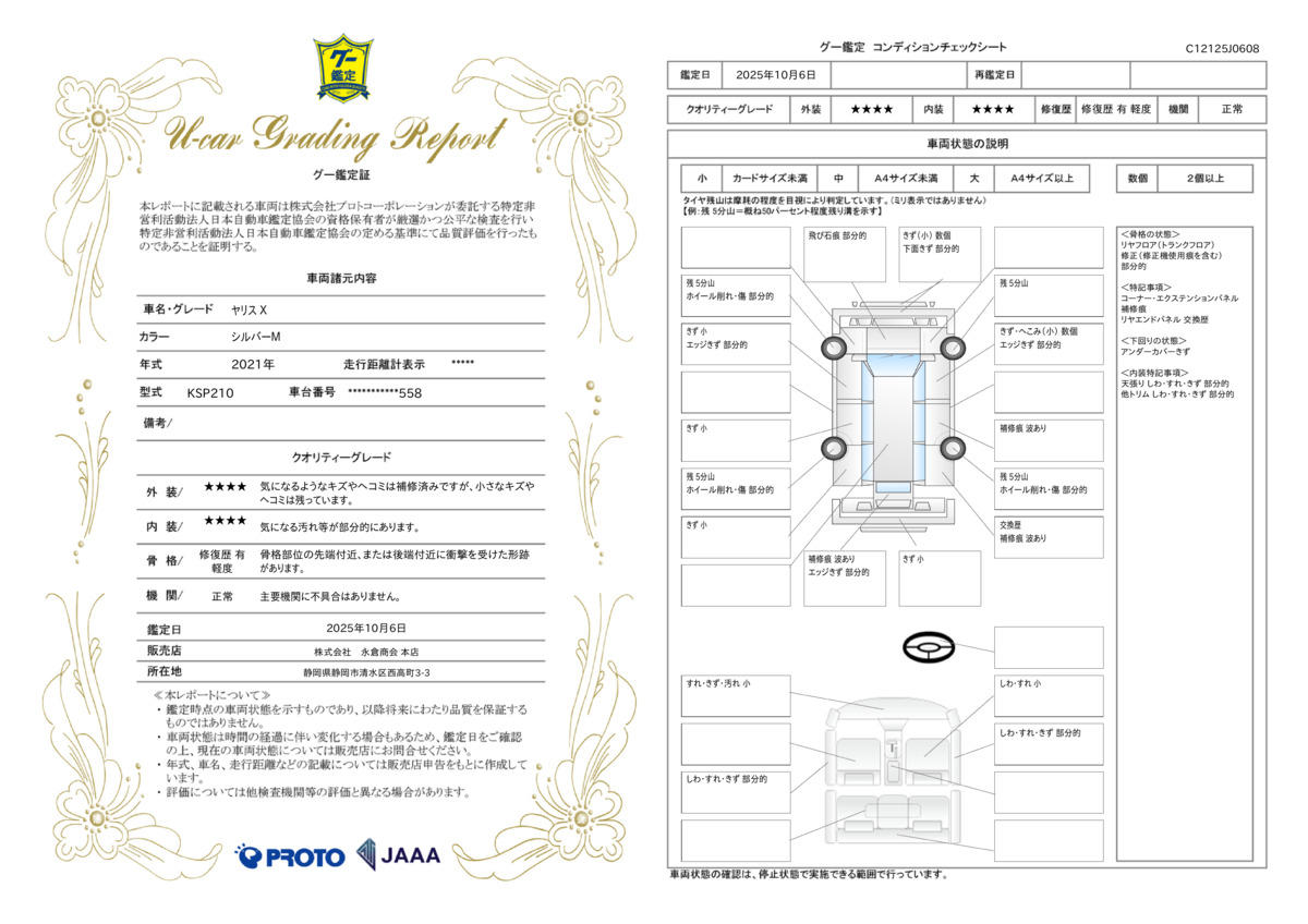 | 走行距離 | 2.6万km | 修復歴 | あり |