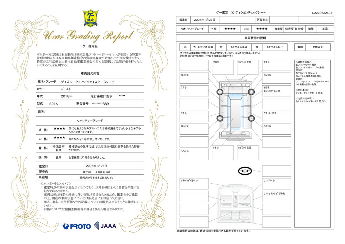 | 走行距離 | 5.0万km | 修復歴 | あり |