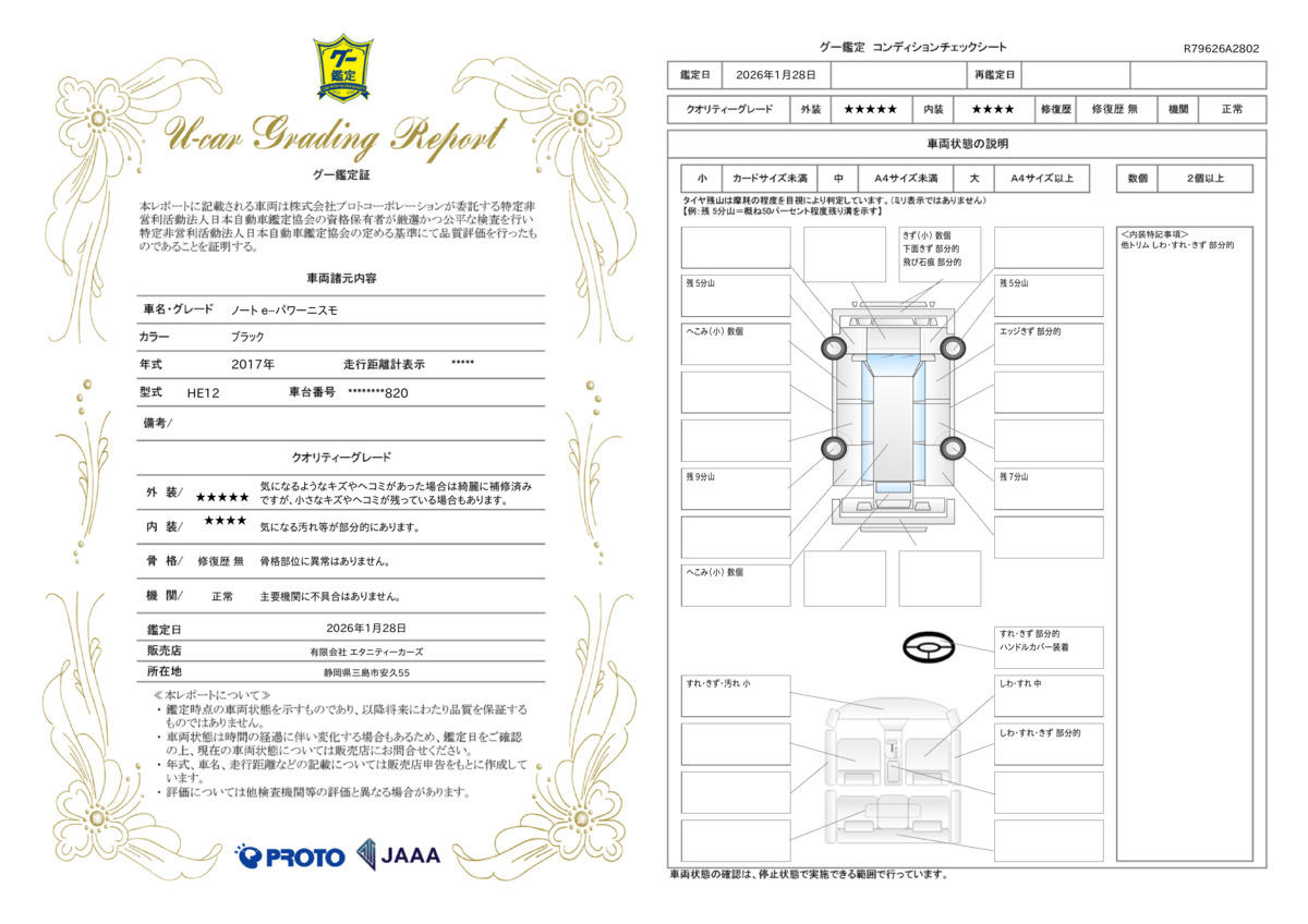 | 走行距離 | 5.6万km | 修復歴 | なし |