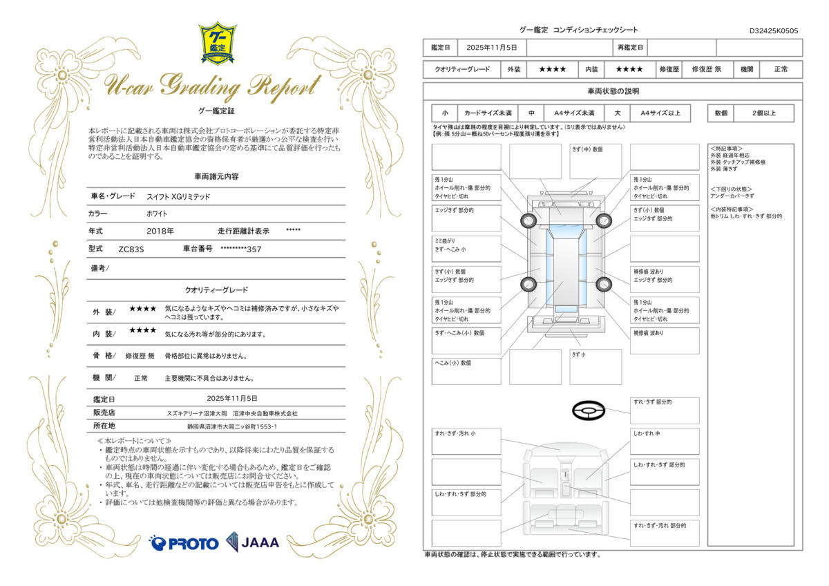 | 走行距離 | 2.2万km | 修復歴 | なし |