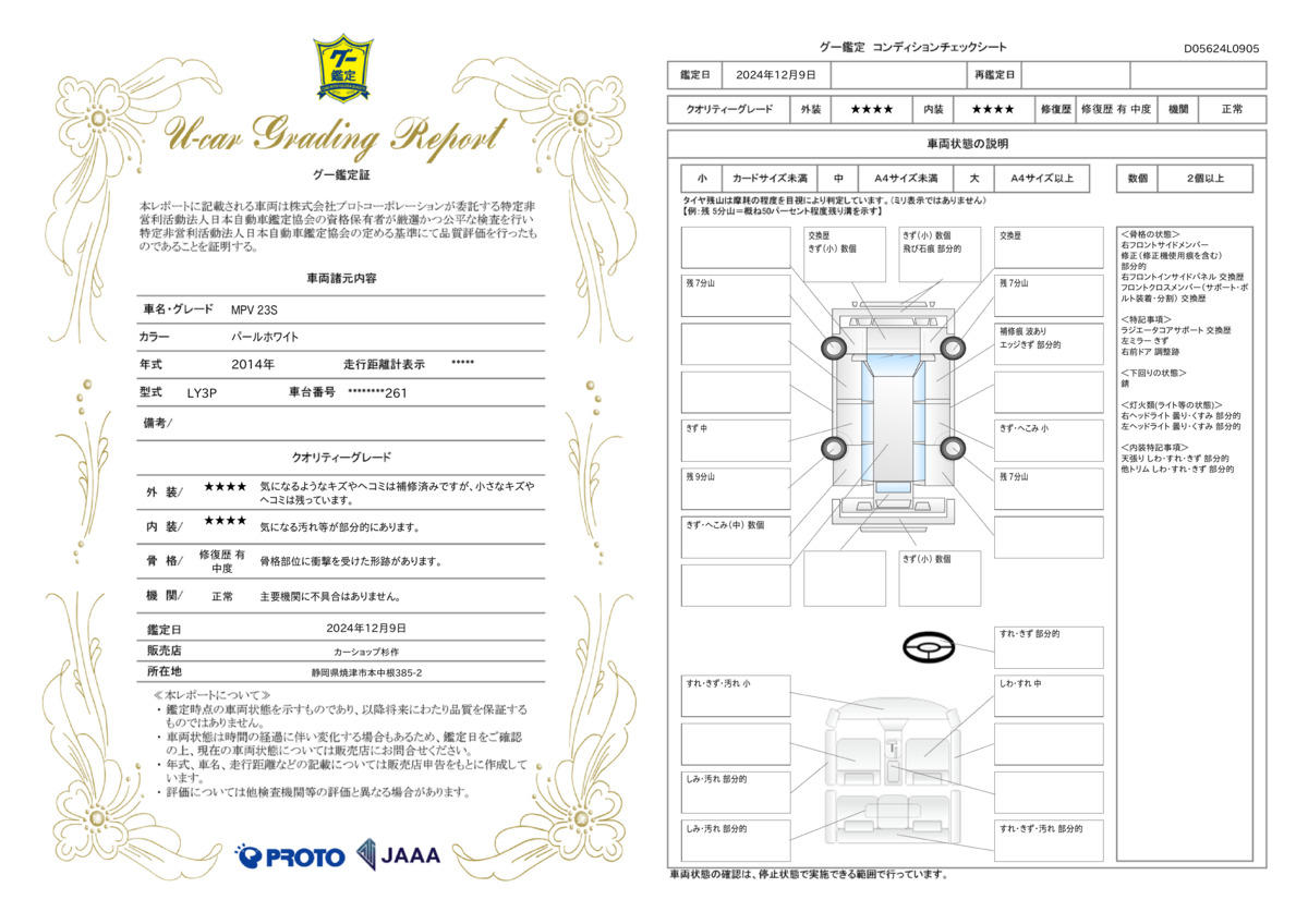 | 走行距離 | 10.3万km | 修復歴 | あり |