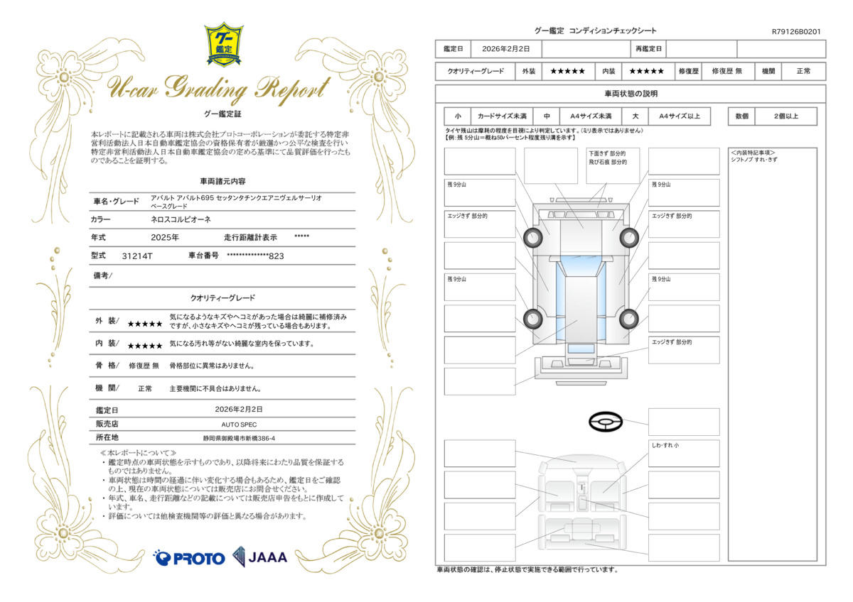 | 走行距離 | 0.3万km | 修復歴 | なし |