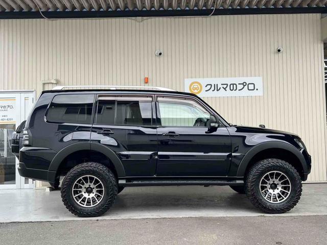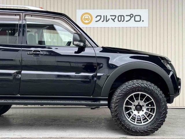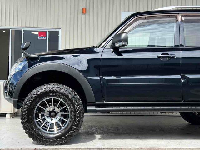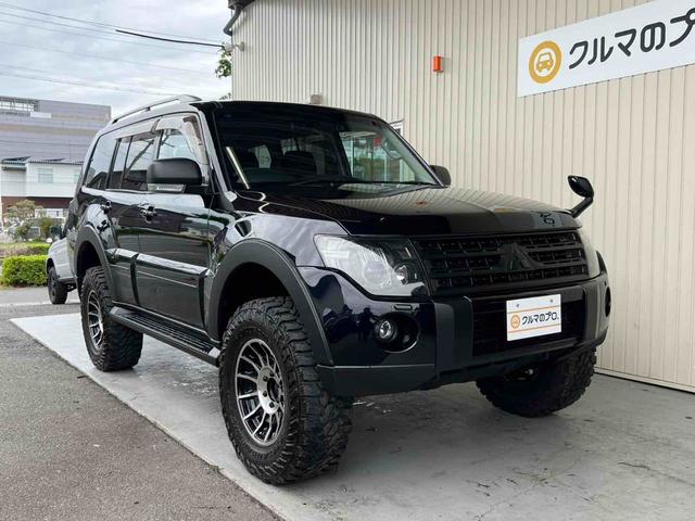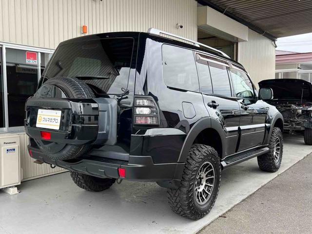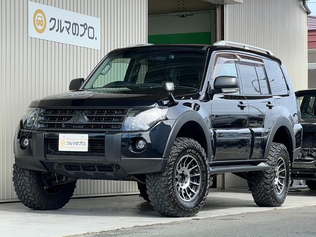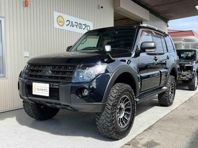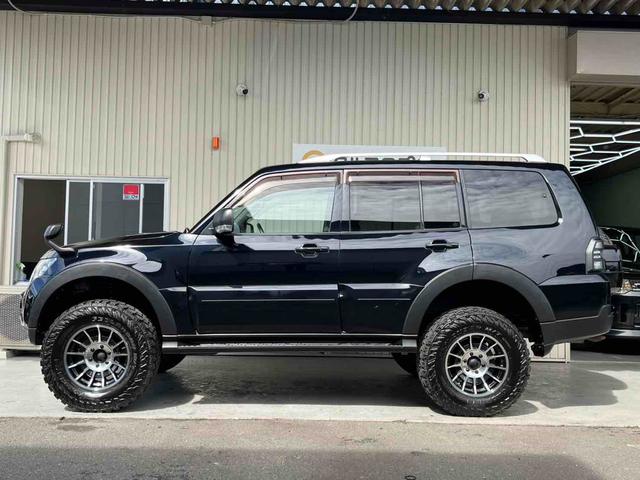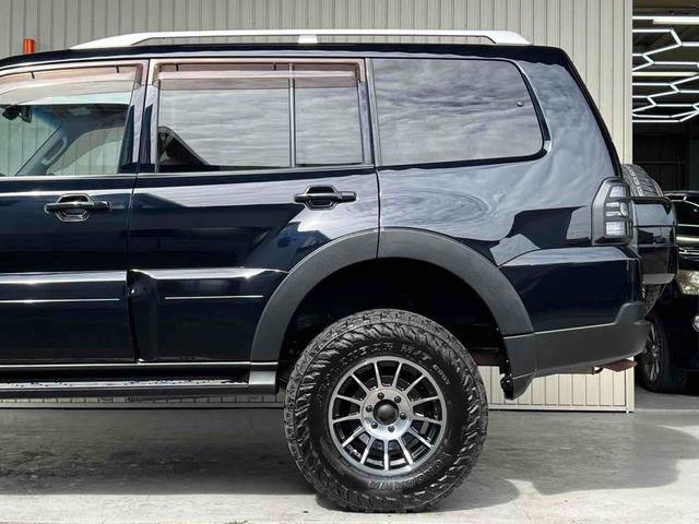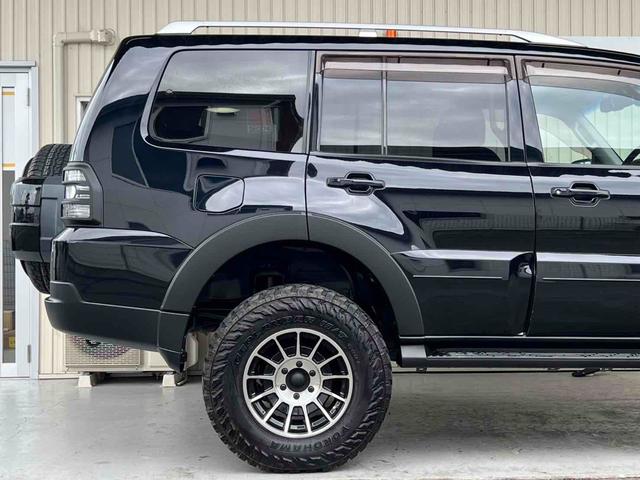三菱 パジェロロング エクシード 2インチリフトアップ ENKEI 17インチアルミホイール GEOLANDAR M/Tタイヤ ブラックアウトカスタム インナーブラック ルーフレール テールランプカバー ナビ TV ドラレコ ETC