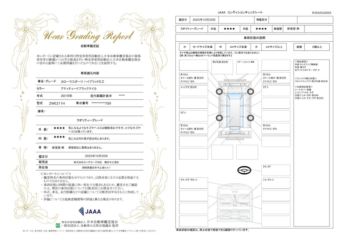 走行距離 | 6.8万km | 修復歴 | なし |