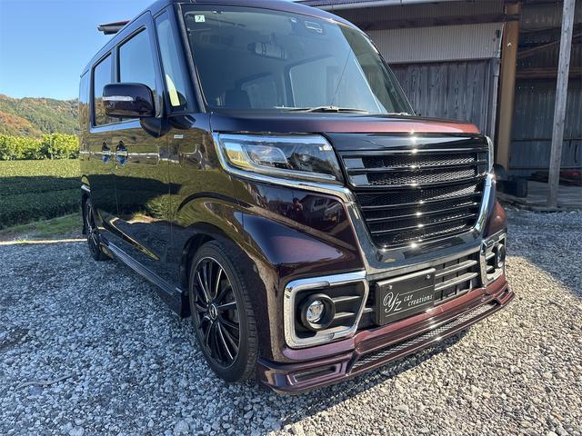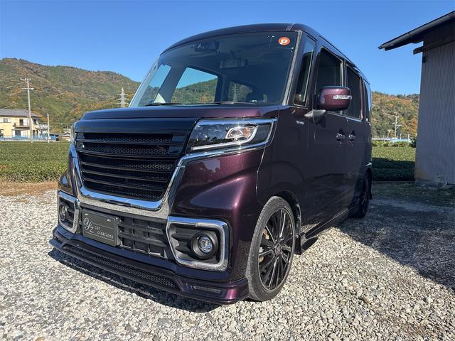 スズキ スペーシアカスタムハイブリッドXSターボ ワンオーナー ローダウン フルエアロ 16インチAW 8インチナビ 両側パワースライドドア