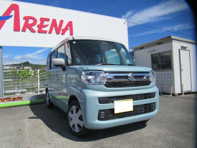 スズキ スペーシアハイブリッドX 届出済未使用車 純正9インチ全方位バックカメラ付ナビ Bluetooth フルセグTV 両側電動スライド 後席用サーキュレーター 左右席シートヒーター 前後ブレーキサポート オートLEDライト