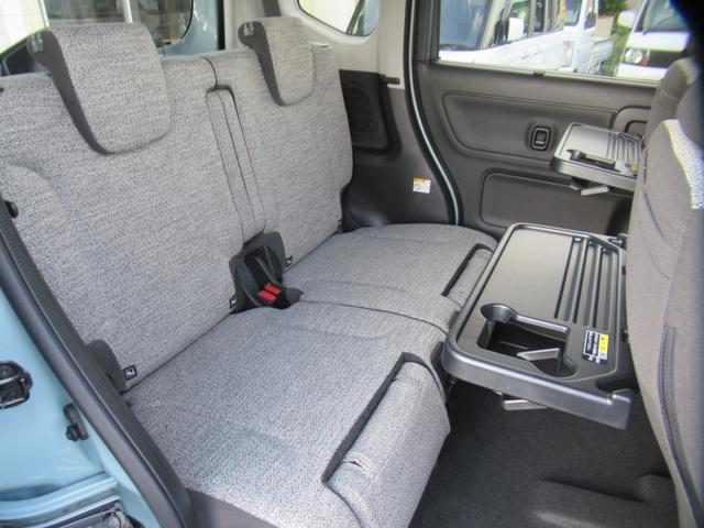 後席シートのテーブルを広げた画像です。後席もしっかりとキレイになっていますよ!ご家族で一緒にお出掛けしたくなりますよ!届出済未使用車ですので当たり前ですね。