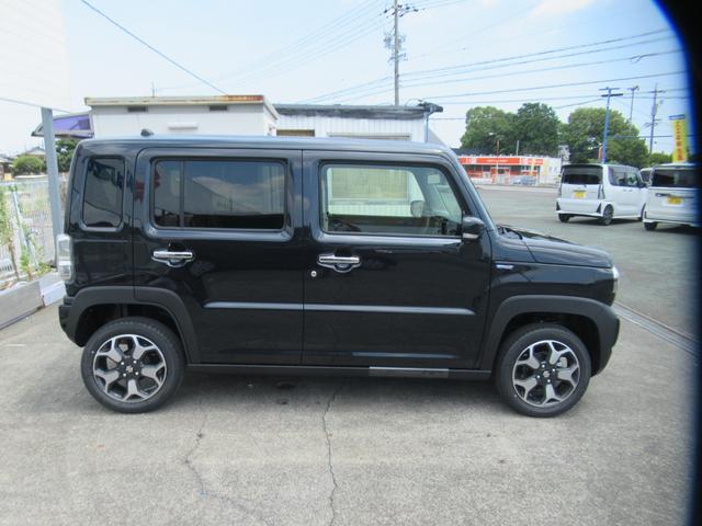 スズキ ハスラーハイブリッドX 届出済未使用車 全方向99%UVカットガラス 後席用テーブル アダプティブクルコンACC 前後ブレーキサポート 車線逸脱抑制 先行車お知らせ オートLEDライト アイドリングストップ オーディオレス