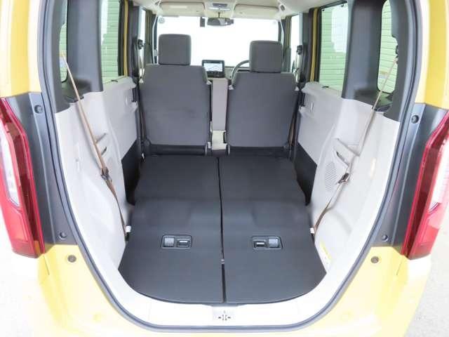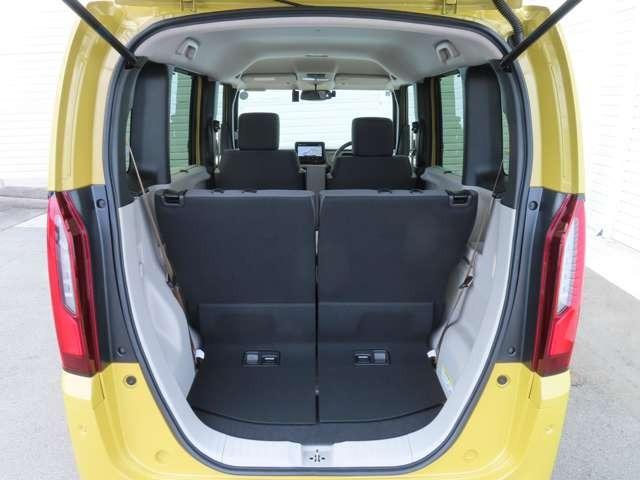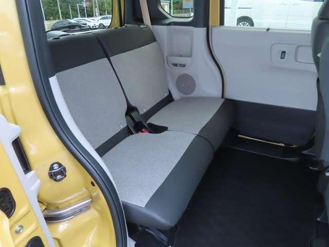 後席は広々。大人の方でも足を伸ばして座ることができます。座面部分を持ち上げたり背もたれを倒したり、多彩なシートアレンジが出来ます。