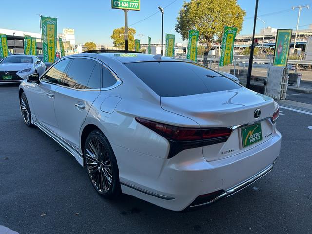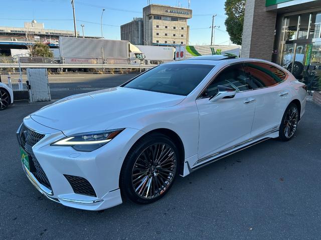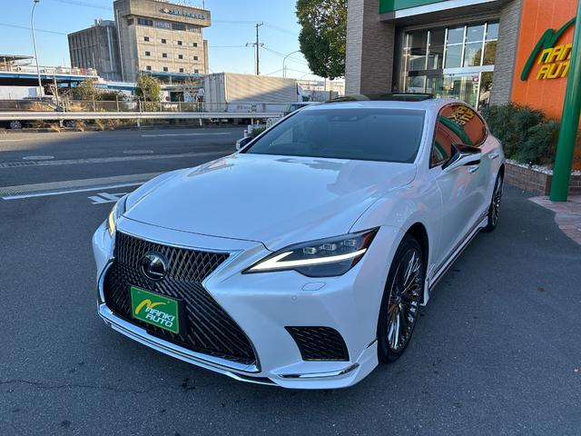 レクサス LSLS500h Iパッケージ 純正ナビ・地デジTV/サンルーフ/レザーシート/レクサスセーフティシステム/マークレビンソン/パノラミックビューモニター/デジタルインナーミラー/WALD21インチアルミ(新品)モデリスタエアロパーツ