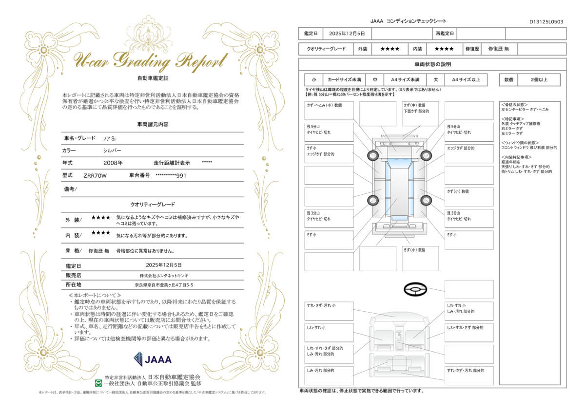 | 走行距離 | 7.0万km | 修復歴 | なし |