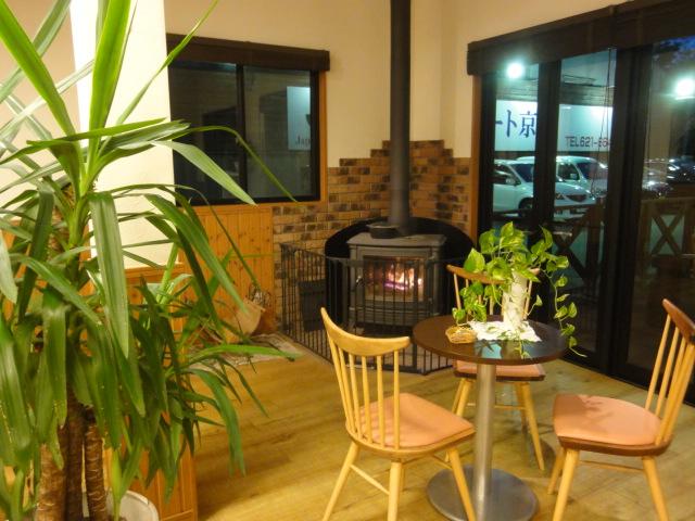 作業待ちの時間もカフェのような空間で、くつろぎながらお待ち頂けます。冬季は薪ストーブに火が灯り非日常的な空間を演出します!