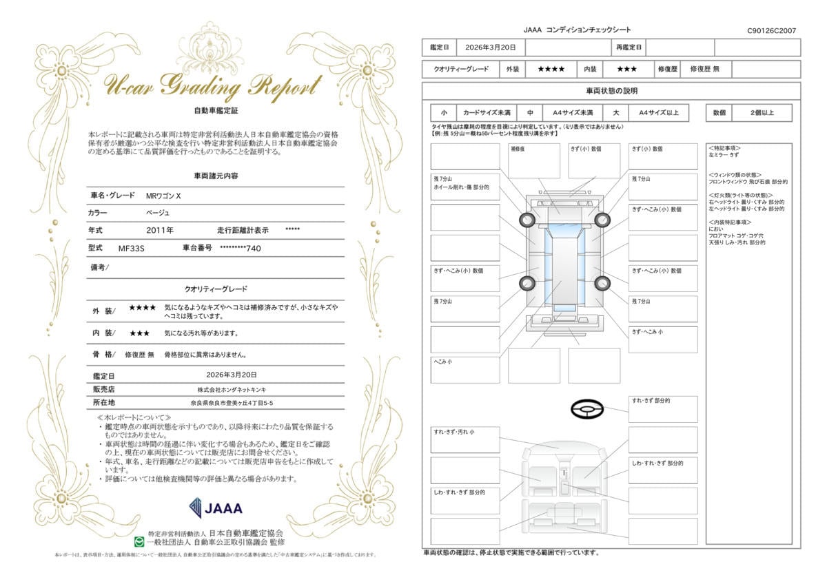 | 記録簿 | ー | 輸入認定中古車 | ー |