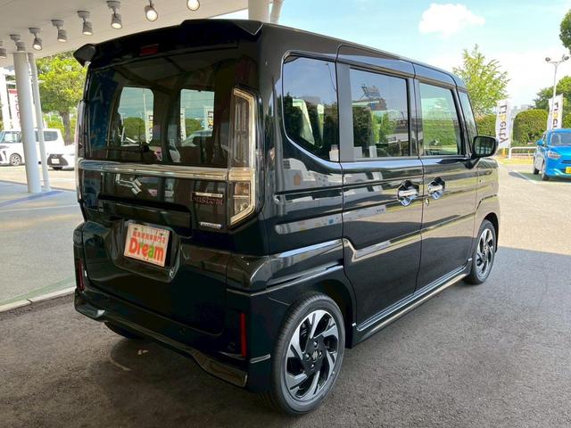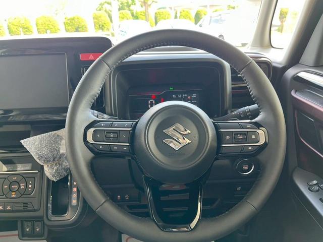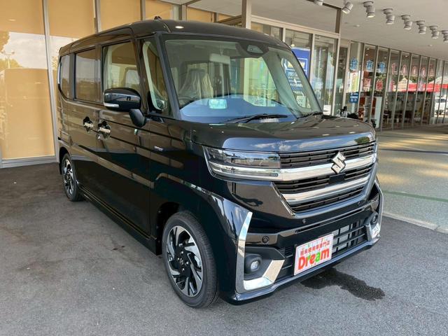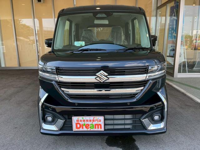 スズキ スペーシアカスタムハイブリッドXSターボ 届出済未使用車 禁煙車 両側電動スライドドア 衝突被害軽減ブレーキ アダプティブクルーズコントロール 前席シートヒーター ハンドルヒーター 純正アルミホイール LEDヘッドライト オットマン