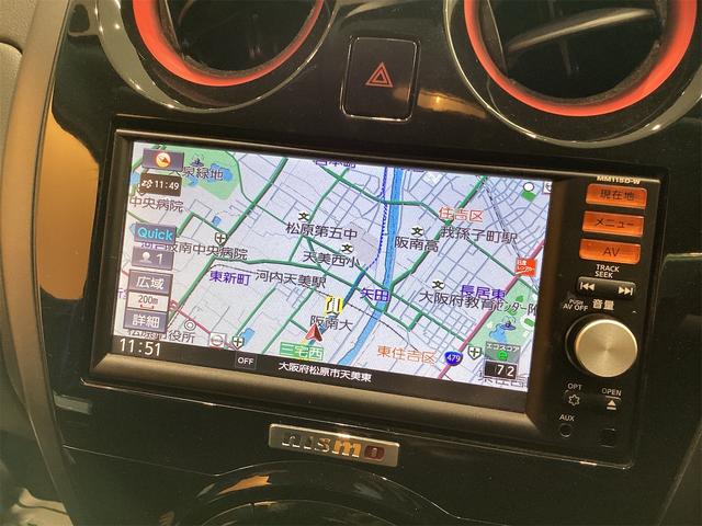 ニスモ ETC バックカメラ ナビ TV アルミホイール スマートキー アイドリングストップ 電動格納ミラー CVT 盗難防止システム 衝突安全ボディ ABS ESC CD USB