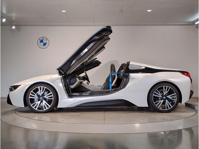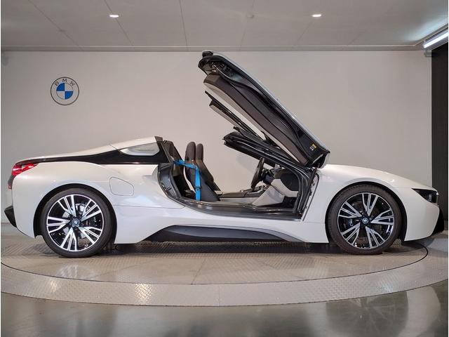 BMW i8ロードスター インテリアデザインHALO・ダルベルギアブラウン革・オプション20インチAW・ハーマンカードンスピーカー・BMWiベルトシートベルト・ヘッドアップディスプレイ・シザードア・カーボンルーフ・全周囲カメラ