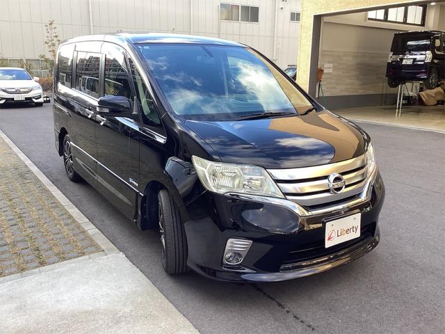 日産 セレナハイウェイスター S-ハイブリッド Vセレクション 純正ナビ TV Bカメラ フリップダウンモニター ETC 両側自動ドア クルーズコントロール 革巻きステアリング HIDヘッドライト スマートキー プッシュスタート 社外アルミホイール