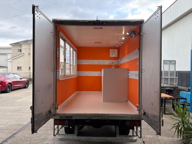 マツダ タイタンダッシュキッチンカー仕様 W2600XH970アルミサッシ窓 Wシンク内新品200L給排水タンク 新品電動給水ポンプ レール式LEDスポットライト 新品換気扇カバー付属 新品フロアー張替え施工 オレンジ壁 リフォーム後未使用