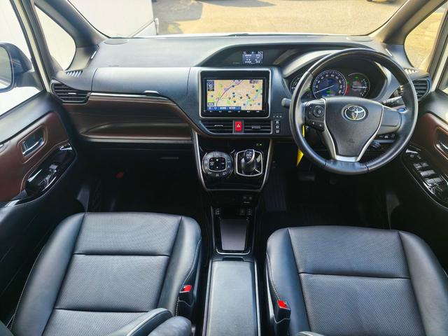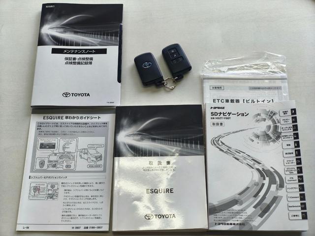 トヨタ エスクァイアハイブリッドGi 純正9インチナビ バックカメラ フロントカメラ 前席シートヒーター AC100V1500Wコンセント 両側パワースライドドア クルーズコントロール PKSB ETC リアオートエアコン スペアキー