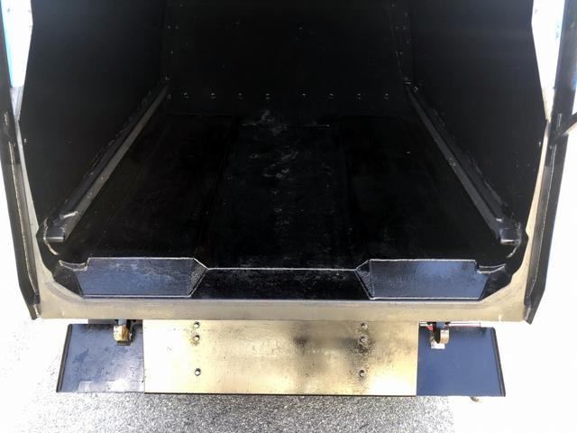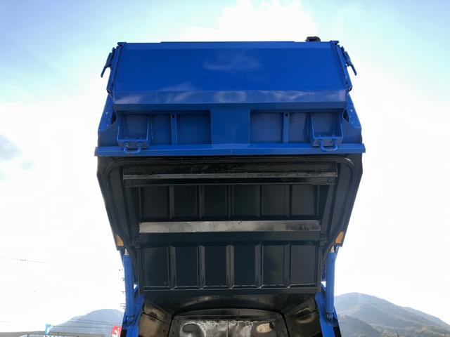 上物は、極東開発工業製のプレスパック『GB46-220』容積4.6m3! 投入口に入れたゴミ等を圧縮して庫内へ押し込み、最後に庫内の溜まった物は、排出板で外へ押し出す便利な仕様!