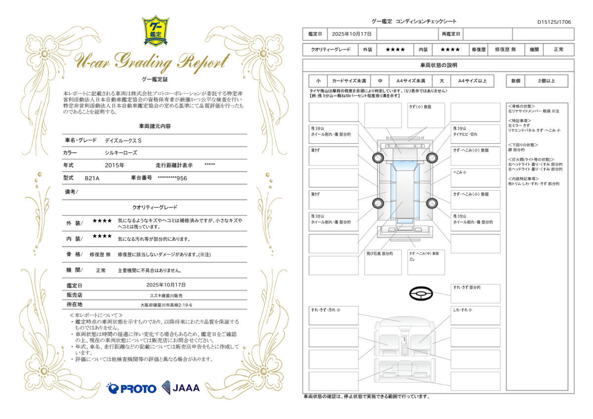 | 走行距離 | 7.8万km | 修復歴 | なし |