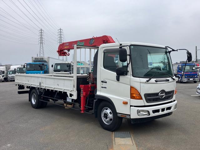 日野 ヒノレンジャー クレーン付き平ボディ/ユニック製4段ブーム/東洋ボディ/ラジコン付き/吊t数2.93t/床材質木板/セイコーラック2個/ロープ穴8個/積載量2,650kg/ターボ/190馬力!