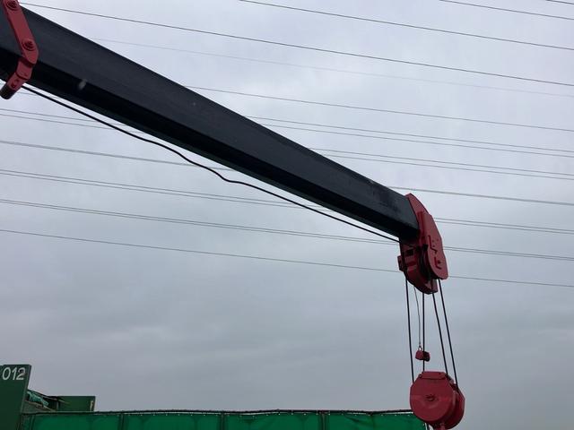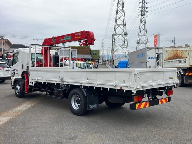 クレーン付き平ボディ/ユニック製4段ブーム/東洋ボディ/ラジコン付き/吊t数2.93t/床材質木板/セイコーラック2個/ロープ穴8個/積載量2,650kg/ターボ/190馬力!