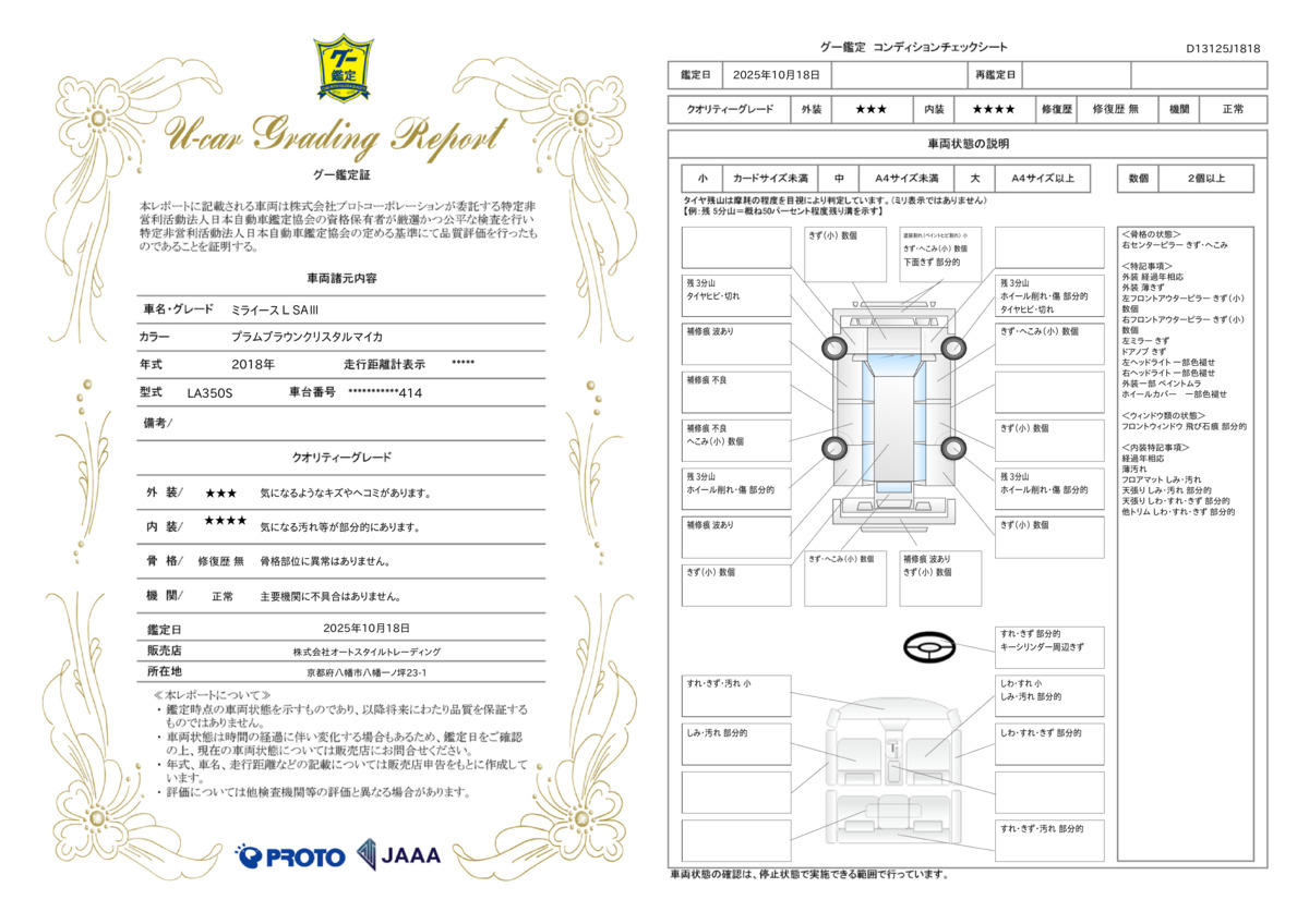 | 走行距離 | 3.0万km | 修復歴 | なし |