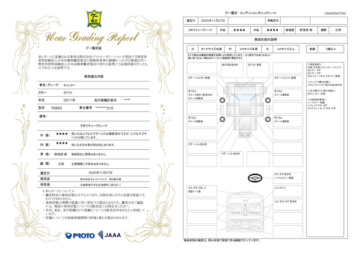 | 走行距離 | 29.3万km | 修復歴 | なし |