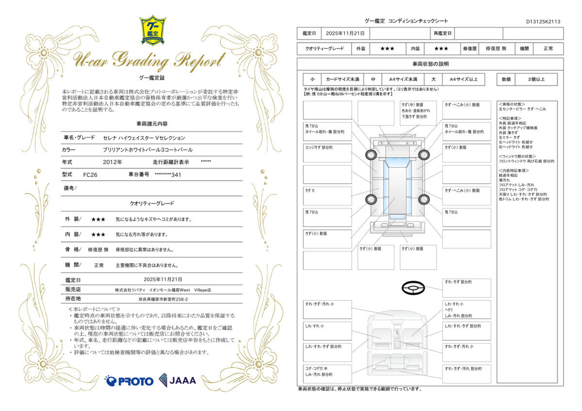 | 記録簿 | ー | 輸入認定中古車 | ー |
