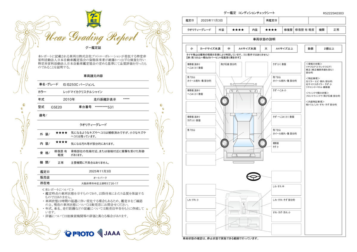 | 走行距離 | 2.0万km | 修復歴 | あり |
