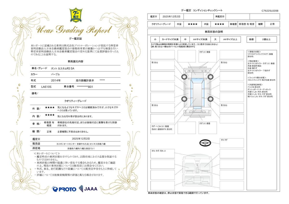 | 走行距離 | 11.5万km | 修復歴 | あり |