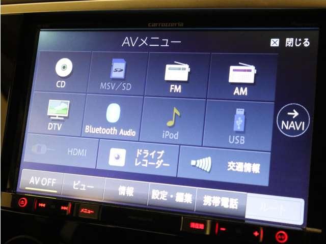 オーディオソース画面です。フルセグTVの他、CD/DVD再生、Bluetooth Audio等に対応します。