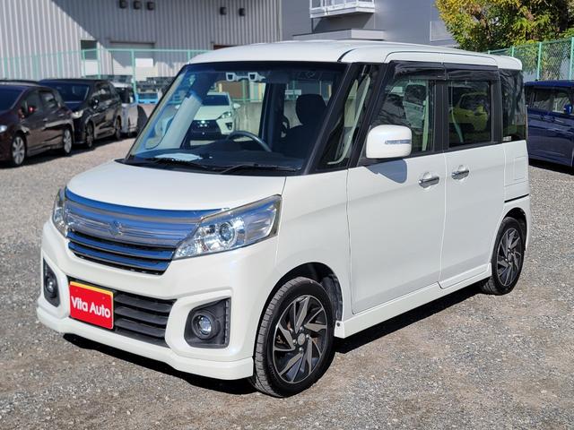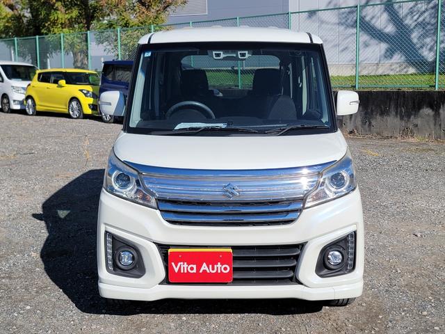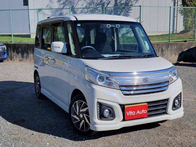 スズキ スペーシアカスタムXS SDナビ フルセグTV スマートキー LEDヘッドライト 衝突軽減ブレーキ 両側パワスラ シートヒーター Bluetooth 純正15インチアルミ ETC