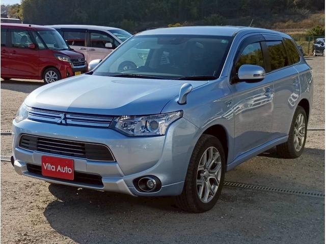 三菱 アウトランダーPHEVGセーフティパッケージ 4WD SDナビ フルセグTV リアカメラ スマートキー HIDヘッドライト 衝突軽減ブレーキ 革シート シートヒーター Bluetooth ACC 純正18インチアルミ