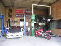 2柱リフト完備でオイル交換はもちろんのエンジンの積み替足廻りまでレースでのメカ経験でバックアップ