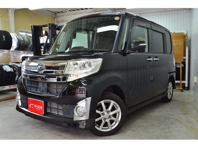 ダイハツ タントカスタムX 4WD 車検令和9年5月まで 禁煙車 純正ナビ バックカメラ スマートキー プッシュスタート LEDヘッドライト フォグ 片側電動スライドドア ミラクルオープンドア ベンチシート 純正14インチアルミ
