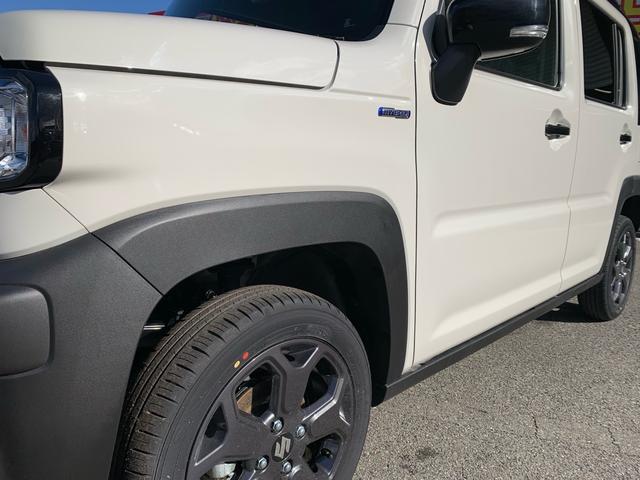 スズキ ハスラータフワイルドターボ 届出済未使用車 禁煙車 ターボ車 シートヒーター USB充電 フォグランプ LEDヘッドライト 衝突軽減ブレーキ付 クリアランスソナー 車線離脱警報 ステアリングリモコン ハイブリッド ツートンカラー
