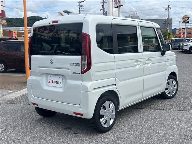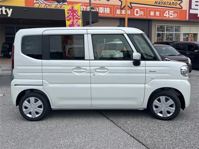 スズキ スペーシアハイブリッドG 両側スライドドア クリアランスソナー レーンアシスト 衝突被害軽減システム LEDヘッドランプ スマートキー アイドリングストップ 電動格納ミラー ベンチシート CVT 盗難防止システム ABS