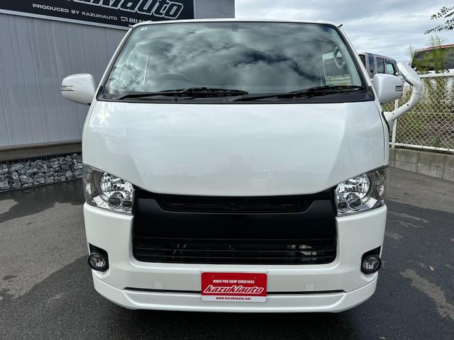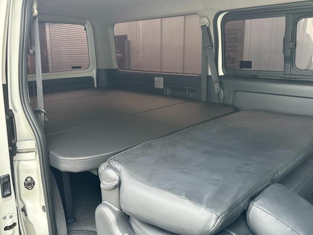 トヨタ レジアスエースバンスーパーGL ダークプライム 玄武2インチローダウンキット/ベッドキット/KB18インチアルミホイール/8mm幅オーバーフェンダー/バッドフェイスボンネット/ガソリン車/両側スライドドア