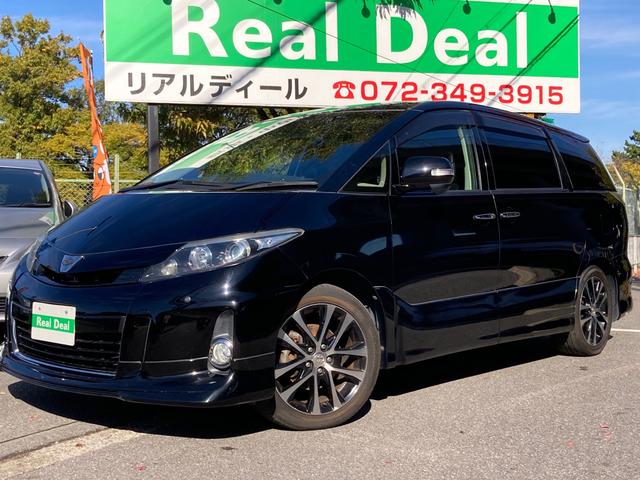 トヨタ エスティマアエラス 7名・中後期モデル・Wムーンルーフ・2列目オットマンシート・両側PSドア・リアモニター・スマートキー・コーナーソナー・PUSHスタート・HDDナビ・TV・Bカメラ・クルコン・純正アルミ・HIDヘッド