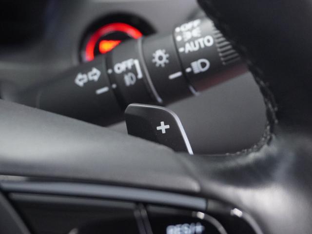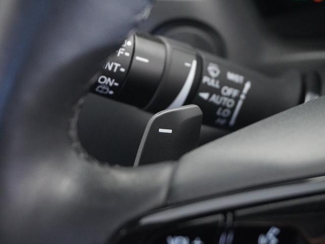 【減速セレクター】ステアリングホイールの左右に取り付けられた2つのパドルスイッチで減速の強さを調整。左側の「-」を操作すると減速を強く、右側の「+」を操作すると減速を弱くすることができます。