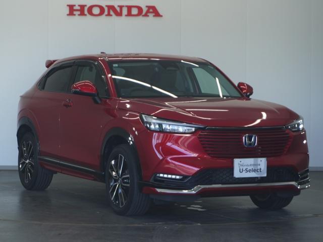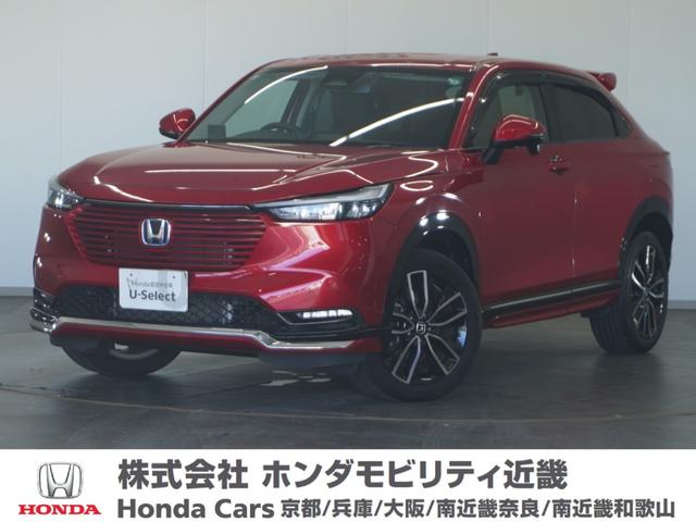 ホンダ ヴェゼルe:HEVZ 1オーナ2年保証ナビDレコRカメETCクルコン地デジ 禁煙車 Bluetooth 純正3点エアロ装備 無限テールゲートスポイラー 無限ドアバイザー ワイヤレス充電器 シートヒーター 純正アルミホイール