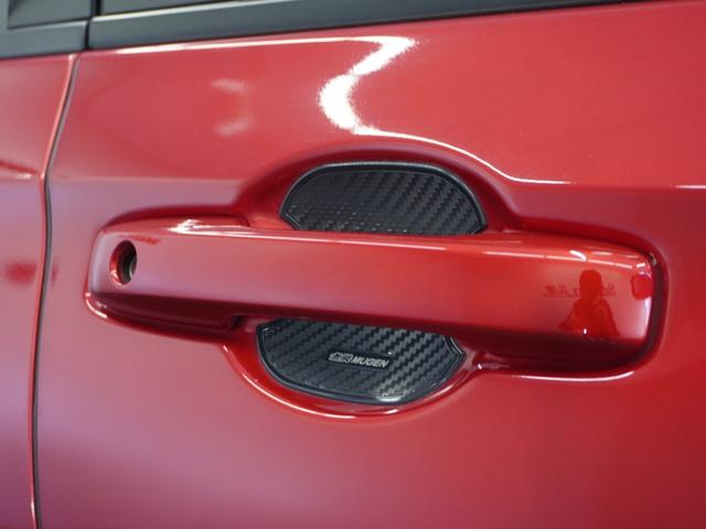 【無限MUGEN】ドアハンドルプロテクターは、ドア開閉時に爪などによる傷を防止できるだけでなく、カーボン調のシボ加工をすることでドアハンドルまわりをスポーティに演出します。