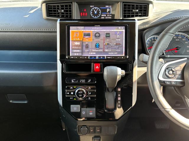 トヨタ ルーミーカスタムG-T 1オーナー 禁煙 ターボ 黒ルーフ シートヒーター シートバックテーブル 両側パワスラ アルパイン9型ナビ・フリップM Rカメラ フルセグTV BT音楽 レーダークルーズ 電動パーキング 純正15AW