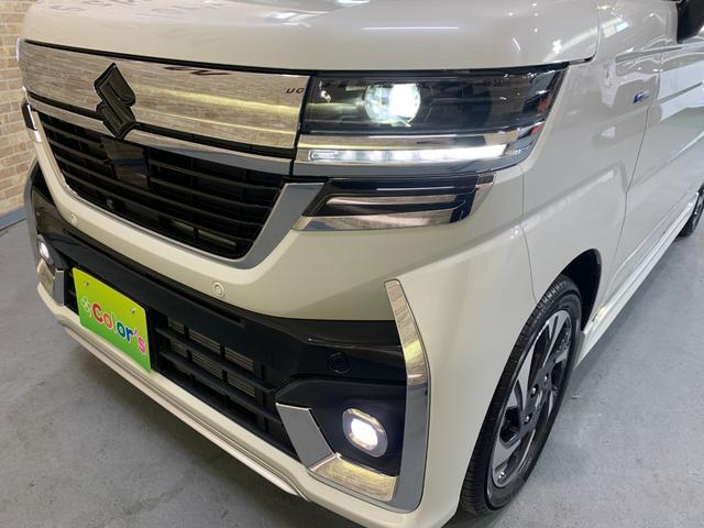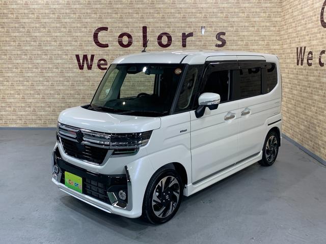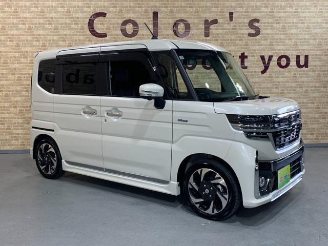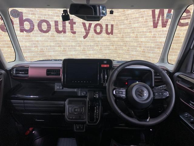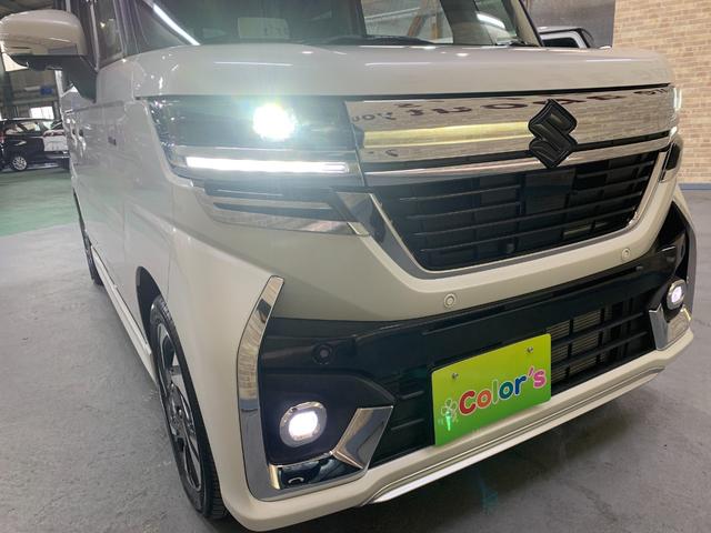 スズキ スペーシアカスタムハイブリッドXSターボ 9インチ純正ナビ 全方位モニター デュアルカメラブレーキサポート フォグランプ ステアリングスイッチ 前席シートヒータ パドルシフト クルーズコントロール ロールサンシェーイド スリムサーキュレータ