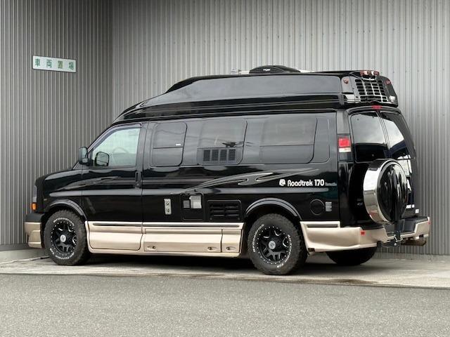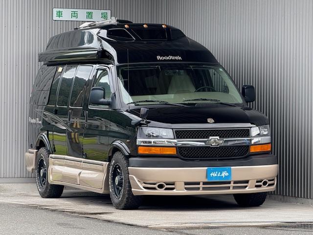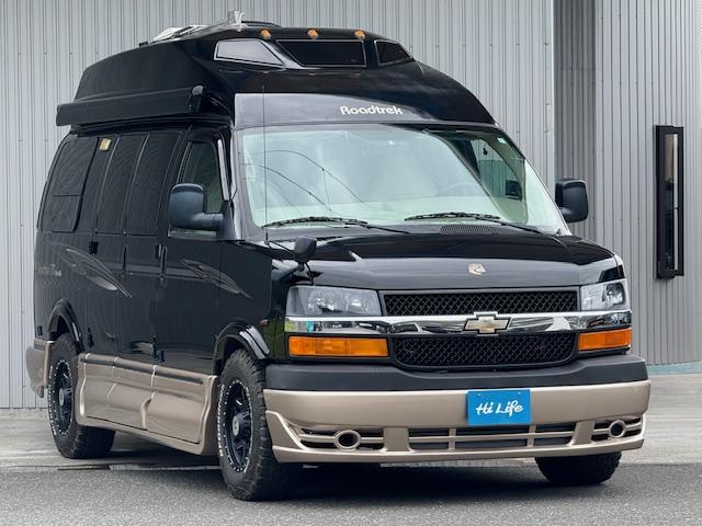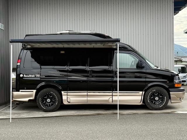 シボレー シボレーエクスプレス ロードトレック170 ヴァーサタイル ディーラー車 シート張替済 エアーサスペンション バックカメラ オーニング ジェネレーター ルーフエアコン ルーフベント FFヒーター ギャレー 冷蔵庫 レンジ