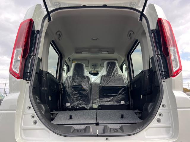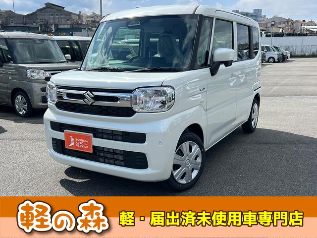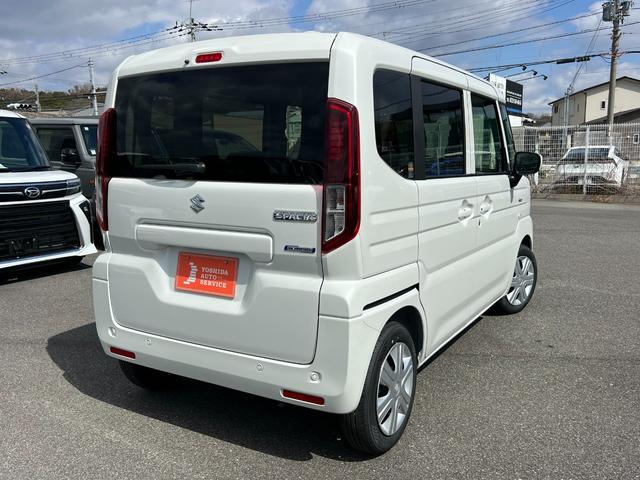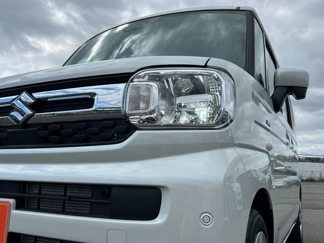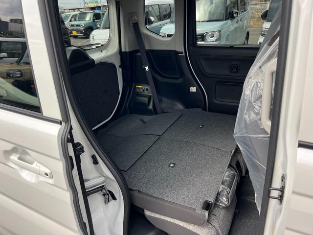 スズキ スペーシアハイブリッドX 軽自動車 届出済未使用車 衝突被害軽減ブレーキ アイドリングストップシステム フルフラットシート ベンチシート スマートキー 両側電動スライドドア シートヒーター オットマン パワーステアリング