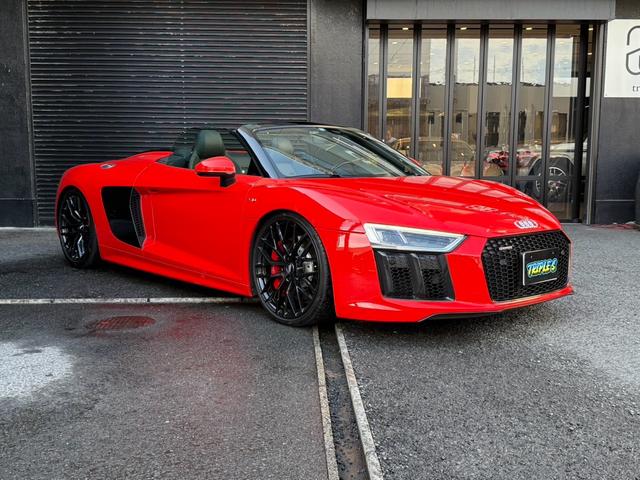 アウディ R8スパイダー V10 ディーラー車 左ハンドル KWローダウン OPブラックアルミ レッドキャリパー EBM可変リモコン BANG&OLUFSENスピーカーレッドステッチ